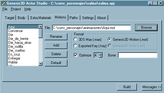 animación en concreto a un formato que entienda Actor Studio, que será un archivo .MOT por animación.