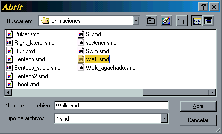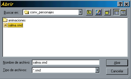 ... pero esta vez, al solicitarnos el fichero .smd, nos dirigimos a nuestra carpeta 'animaciones' y